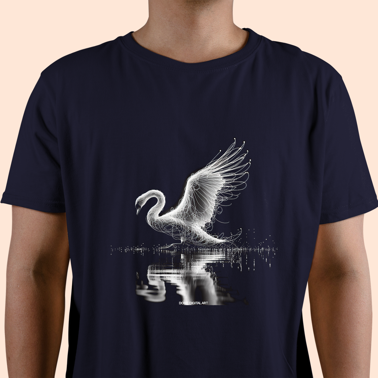 t-shirt Cigno fatto di fili luminosi di luce